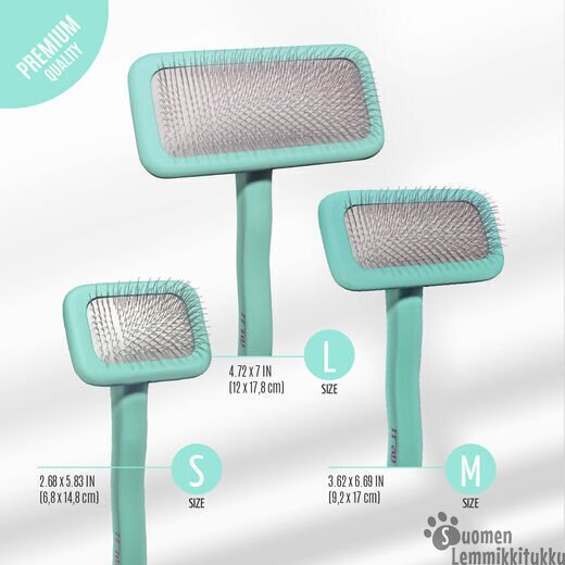 Harjan kahvasta on mukava pitää kiinni, eikä se luiskahda kädestäsi, joten et rasita rannettasi harjaessasi lemmikkiäsi.