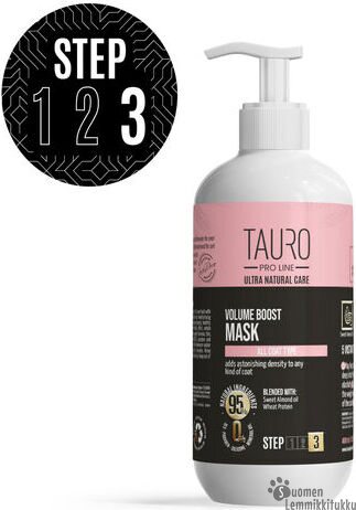 Volume Boost Mask sisältää ensiluokkaisia ainesosia koirille ja kissoille parantamaan ja lisäämään niiden turkkien volyymia.