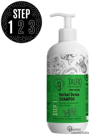 Tauro Pro Line Pure Nature syväpuhdistava Herbal Detox -koirien ja kissojen shampoo on suunniteltu poistamaan likaa ja ylimääräistä talia, jättäen turkin ja ihon erittäin puhtaiksi.
