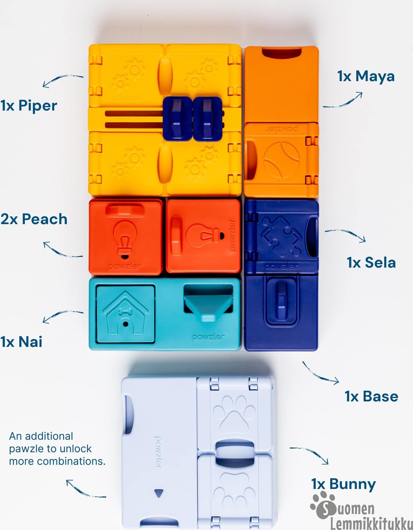 Smarty Set tarjoaa hyvin haastetta lemmikillesi ja voit täydentää ja laajentaa settiä irtopaloilla tai hankkia pohjan ja siihen paloja lisää ja yhdistää pohjat jolloin saat tuplasti isomman Pawzlerin ja tuplasti tietenkin ajanvietettä!