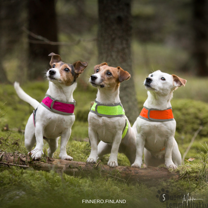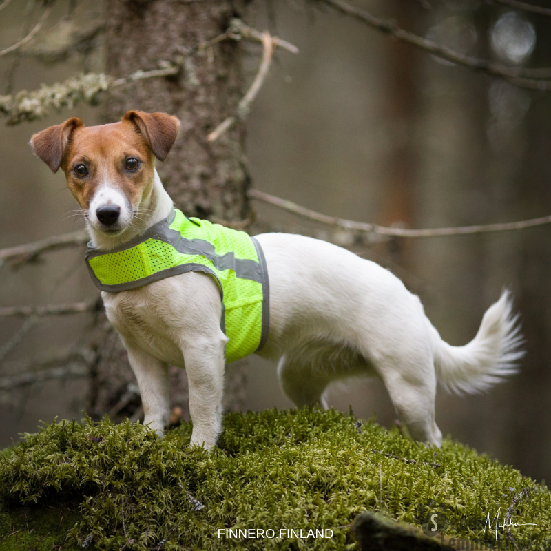 - suunniteltu lisäämään koiran näkyvyyttä hämärällä sekä pimeällä