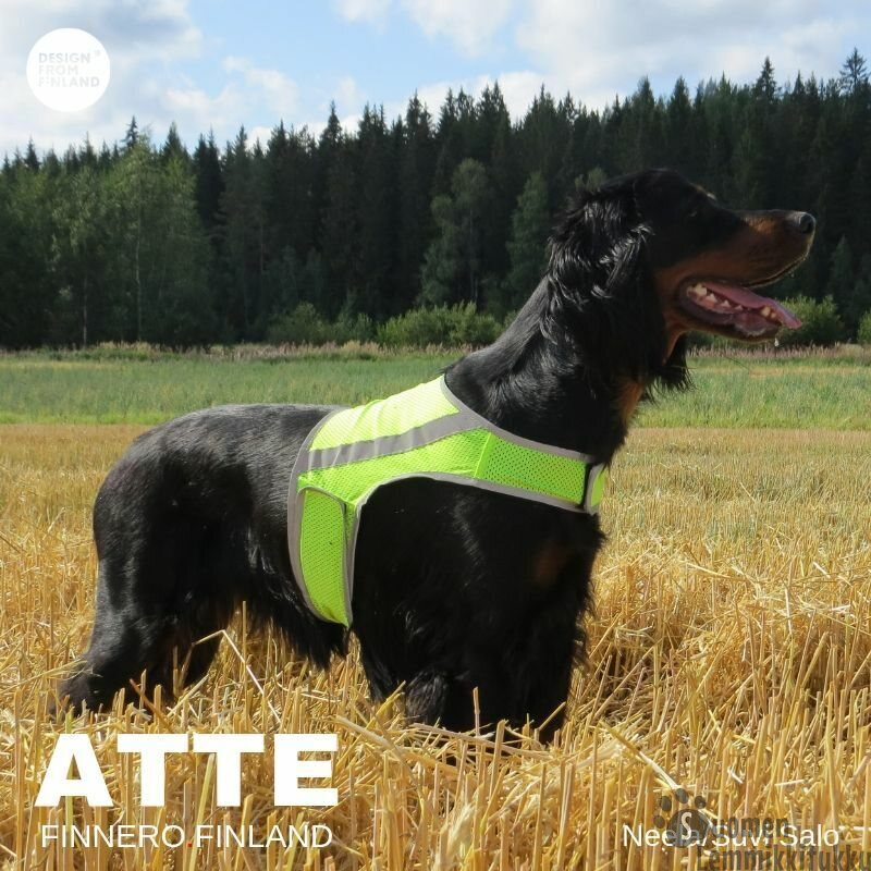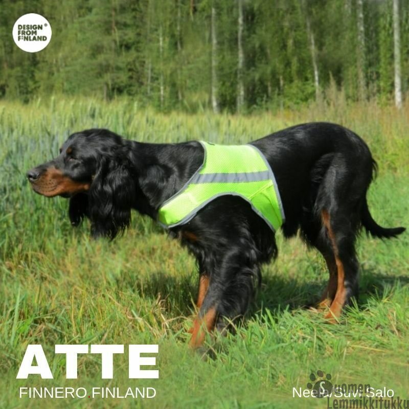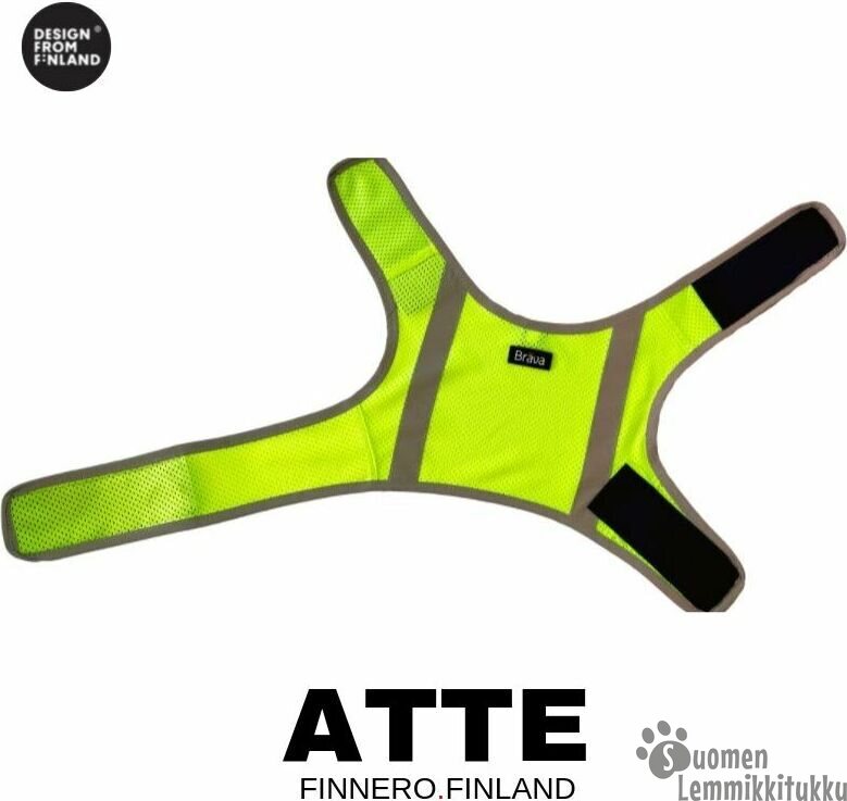 Brava Atte-liivien oranssi väri erottuu tehokkaasti maastosta varmistaen koiran turvallisuuden. Liivit ovat kevyet käytössä ja niissä  on säätövaraa antava, pitävä tarranauhakiinnitys kaulan alla ja vyötäröllä. Ergonominen malli antaa tilaa koiran liikkeille ja on koiralle mukavan huomaamaton päällä. Heijastintereet ja leveä heijastinnauha molemmissa kyljissä varmistavat näkyvyyden pimeässä liikuttaessa.