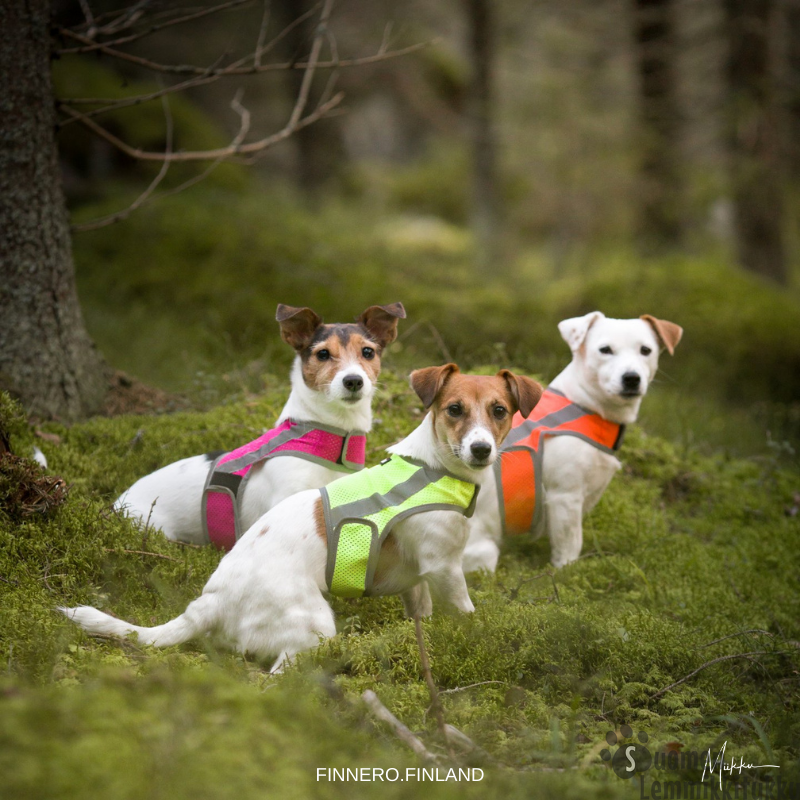 Tarrakiinnitys on valittu koiran turvaksi, jos liivi jää kiinni metsässä risukkoon, niin koira ei kuristu liiviin vaan tarrat aukeaa ja koira pääsee irti. Toki tarroihin aina tarttuu koirasta karvoja, mutta silloin tällöin on hyvä liivi pestä ja samalla puhdistaa karvat pois tarroista.