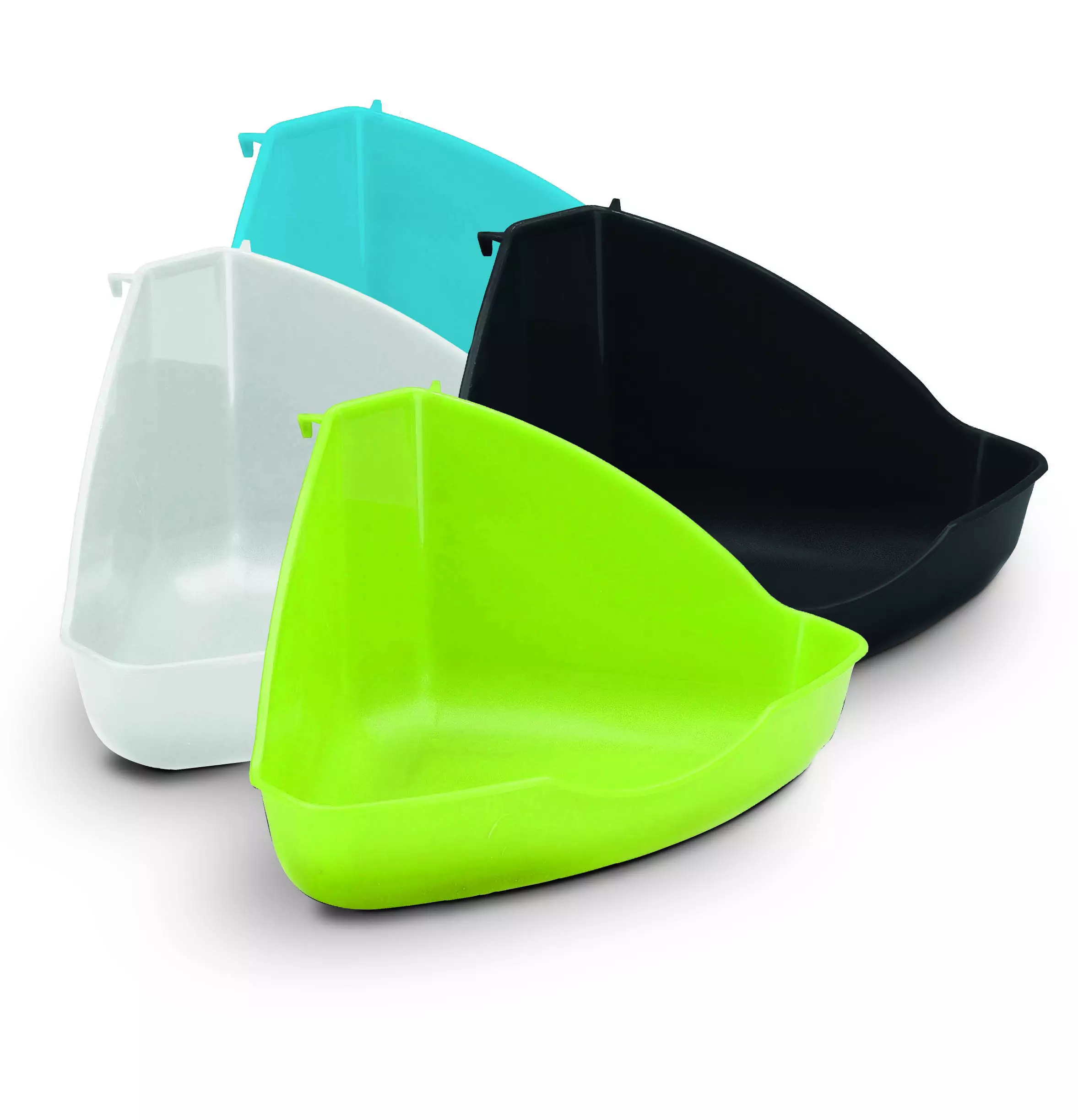 Pienläimille sopiva tilaa säästävä kulmavessa. Materiaali on muovia ja vessan voit laittaa tilaasäästävästi häkin nurkkaan. Takana olevasta reiästä voi pujottaa rautalangan ja kiinnittää vessan tarvittaessa häkin kaltereihin.