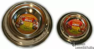 Teräksinen ruokakuppi sopii kaikille jyrsijöille. Kupin reunassa kiertää stanssattuna teksti Russel.