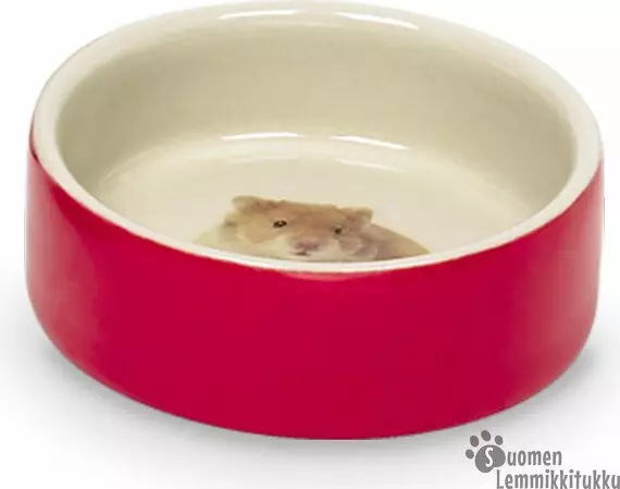 Keraaminen ruokakuppi söpöllä hamsterin kuvalla.