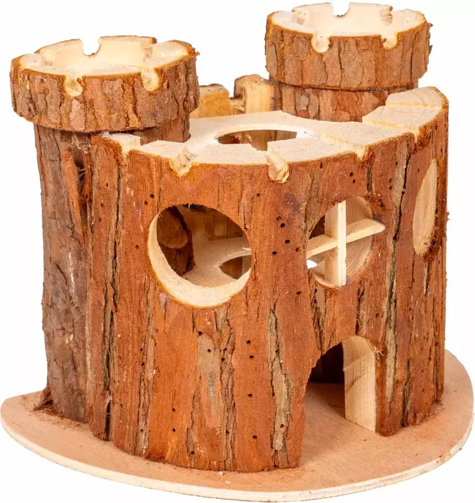Ozamin luonnonpuusta ja kaarnasta valmistettu koristeellinen linna pienille eläimille.