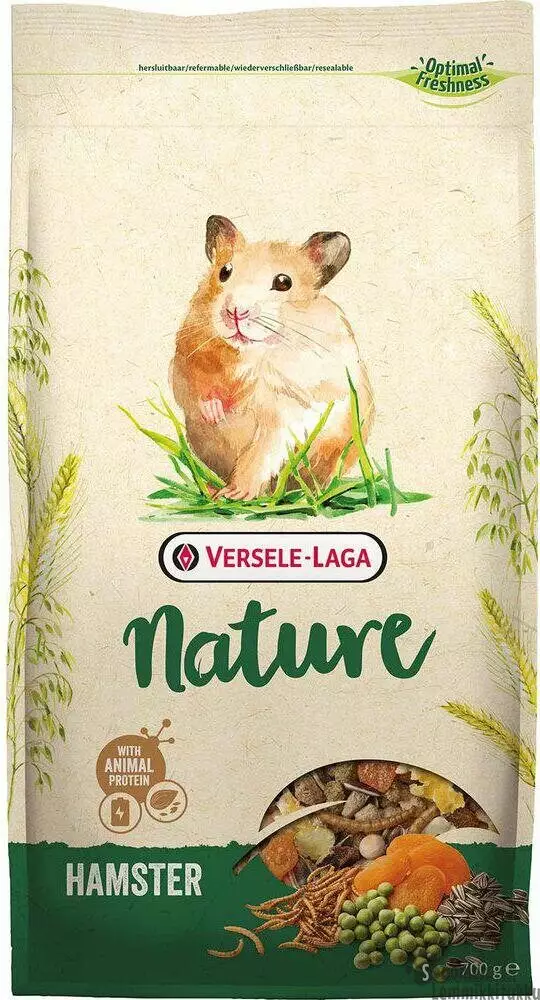 Täysravinto hamstereille. Seos vastaa hamsterien ravitsemuksellisia tarpeita. Sisältää runsaasti pähkinöitä ja siemeniä.