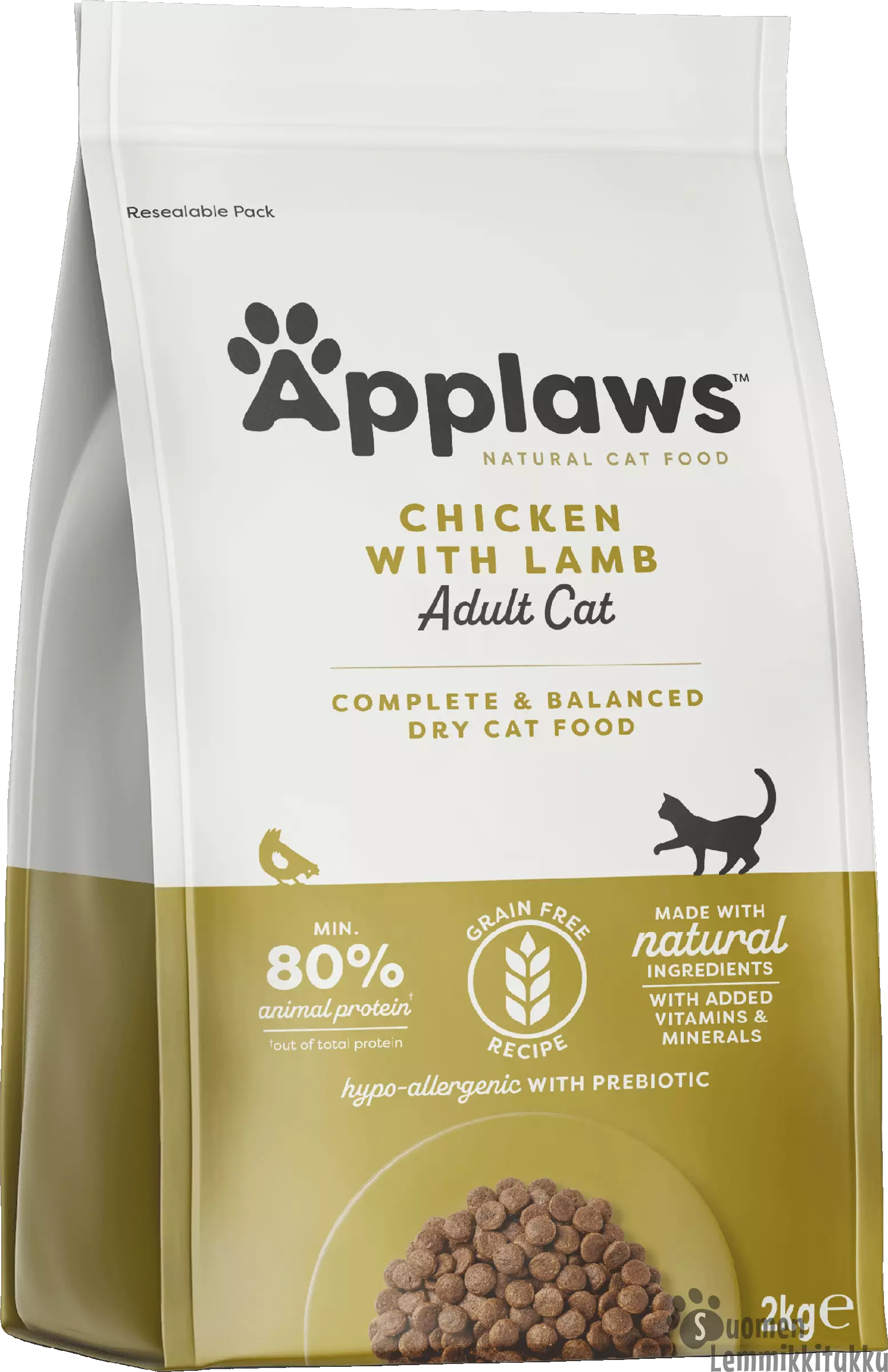 Applaws Kana&lammas ruoka sopii kaikille kissoille eikä se sisällä viljaa eikä keinotekoisia säilöntäaineita. Ruoan antioksidantit ovat peräisin mm. seleenistä ja luonnon tokoferoleista.