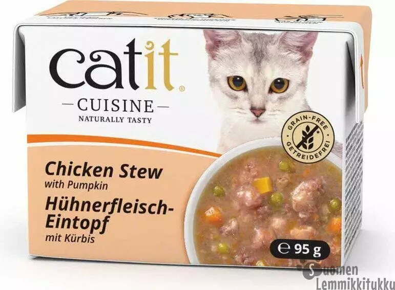 Palasia herkullisessa kastikkeessa on maultaan vastustamatonta ja täynnä välttämättömiä proteiineja, tärkeitä vitamiineja ja kivennäisaineita, jotka saavat kissasi haluamaan lisää tätä herkkuruokaa. Kauniin maalaismainen ja maukas Catit Cuisine-ateria tarjoaa kissallesi ravintoa, joka sisältää runsaasti aitoa lihaa ja terveellisiä kasvissekoituksia. Raaka-aineina käytetään vain luonnollisia ainesosia, jotka on kypsennetty hellävaraisesti alkuperäisten ravintoaineiden ja maun säilyttämiseksi.