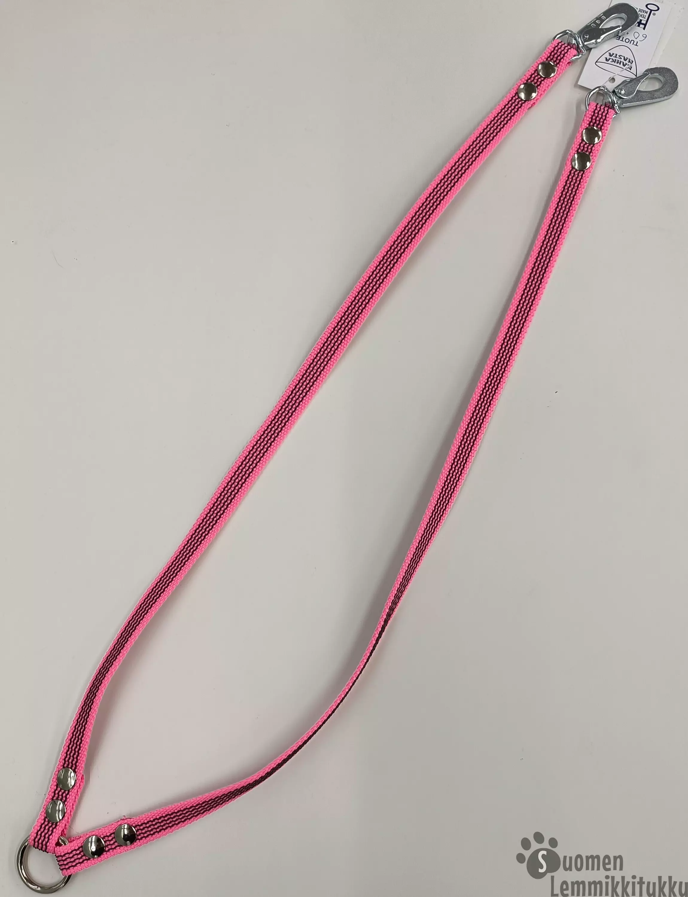 Taluttimen jakaja sopii, kun on kaksi suunnilleen samankokoista koiraa. Taluttimen jakaja opettaa koirat tekemään yhteistyötä ja toimimaan tiiminä. Jakajan materiaali on nylonia ja päässä on... Lue lisää