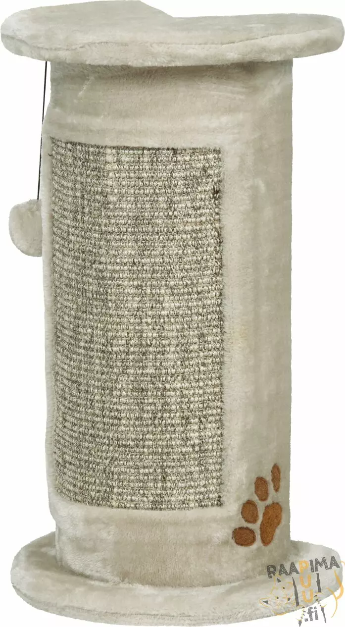 Eckissä harmaa sisalipinta on kehystetty pehmeällä muhkealla plyyshillä. Lisäksi Eckissä roikkuu hauska lelupallo kissasi viihdykkeeksi ja sivussa on kiva tassukuvio.