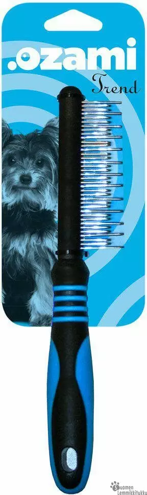 Ozami Trend kampa on Pyörivillä piikeillä varustettu tiheäpiikkinen kampa paksuturkkisille koirille. Tässä kammassa on pyörivät piikit ja osa piikeistä on pitempiä (n. 2cm) ja osa lyhyempiä (n. 1,5cm). Piikkien päät on pyöristetty.
