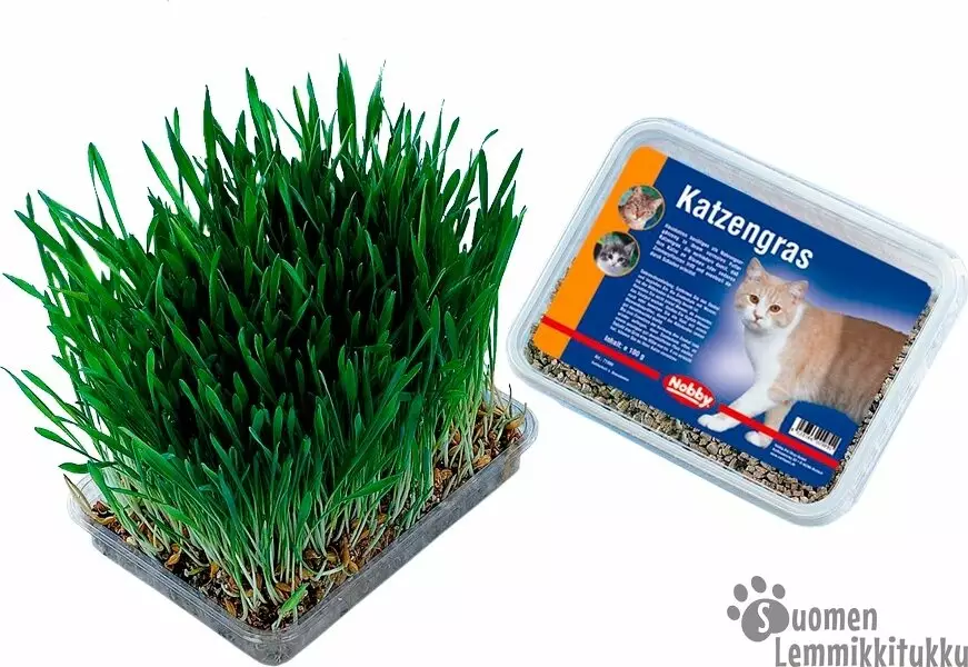 Laita siemenet astiaan ja kastele kosteaksi, muttei märäksi. Aseta astia lämpimään ja valoisaan paikkaan ja huolehdi, että kasvatusalusta pysyy koko ajan kosteana. Siemenet itävät noin kolmessa päivässä. Ruohon voi tarjota kissalle, kun se on n. 4-5 cm korkuista.