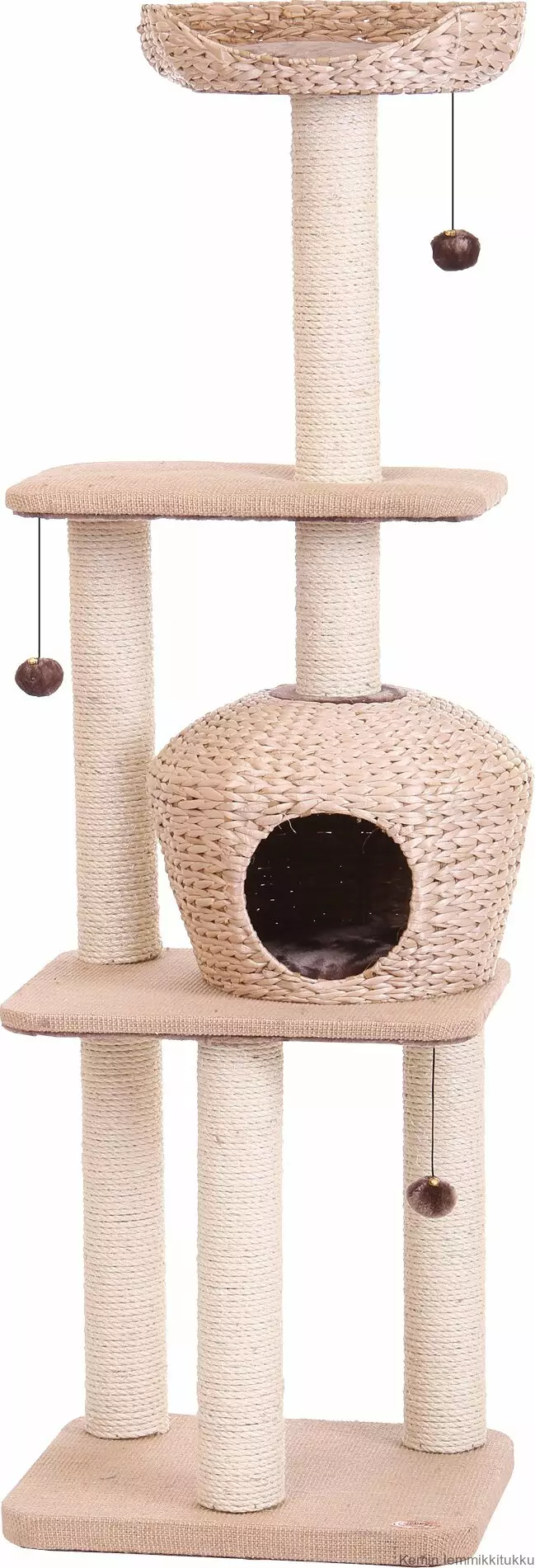 Kolmella tolpalla varustettu Nanuk-raapimapuu sointuu vaalenanruskeana monenlaiseen sisustukseen. Kissasi voi köllötellä vesihyasintilla päällystetyssä pesäkolossa tai viettää aikaa tasoilla leikkien tai tarkkailleen ympäristöä. Nanuk-raapimapuussa on50 x 40 cm:n pohja ja puu on 156 cm korkea.