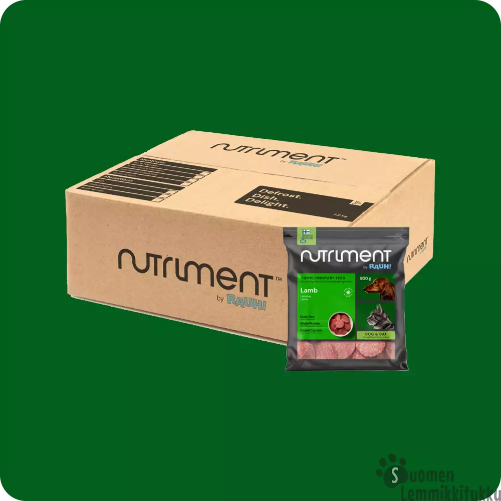 Lampaan liha ja sisäelimet. Lisätty kalsium 1370mg/kg.