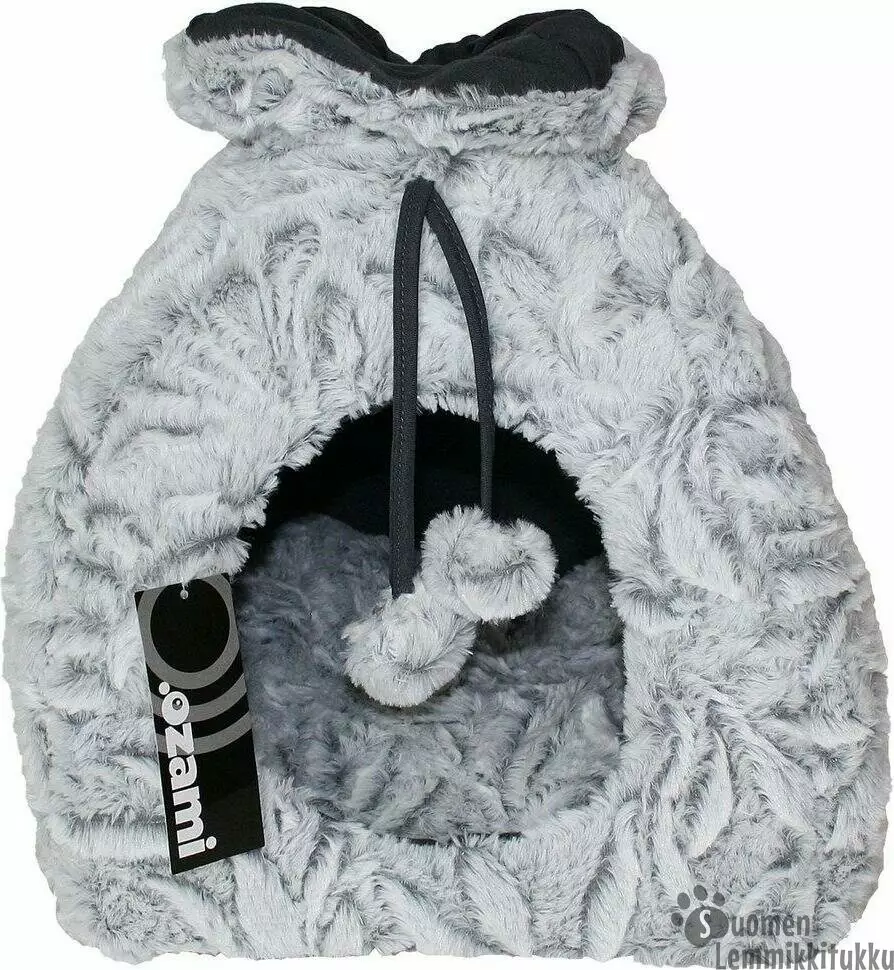 Sissela Kissaniglu on pehmeä ja viihtyisä pesäkolo, joka on tehty tekoturkiksesta. Etuosan turkispallot on kiinni nuorassa, jolla iglun yläosa solmitaan kiinni. Iglun voi jättää yläosasta myös auki, kun jättää narut solmimatta. Iglun sisällä on ihanan pehmoinen irrotettava tyyny.