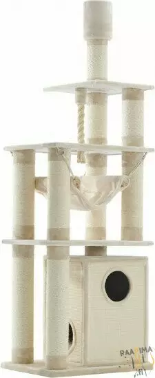 Raapimapuun alaosassa on suojaisa luolapeti, jonka seinissä on myös raapimapinnat. Erilaiset tasot, köysi sekä riippumattopeti tarjoavat kissallesi mukavasti virikkeitä. Korkealla olevalla tasolla on mukavaa makailla ja tarkkailla ympäristöä.