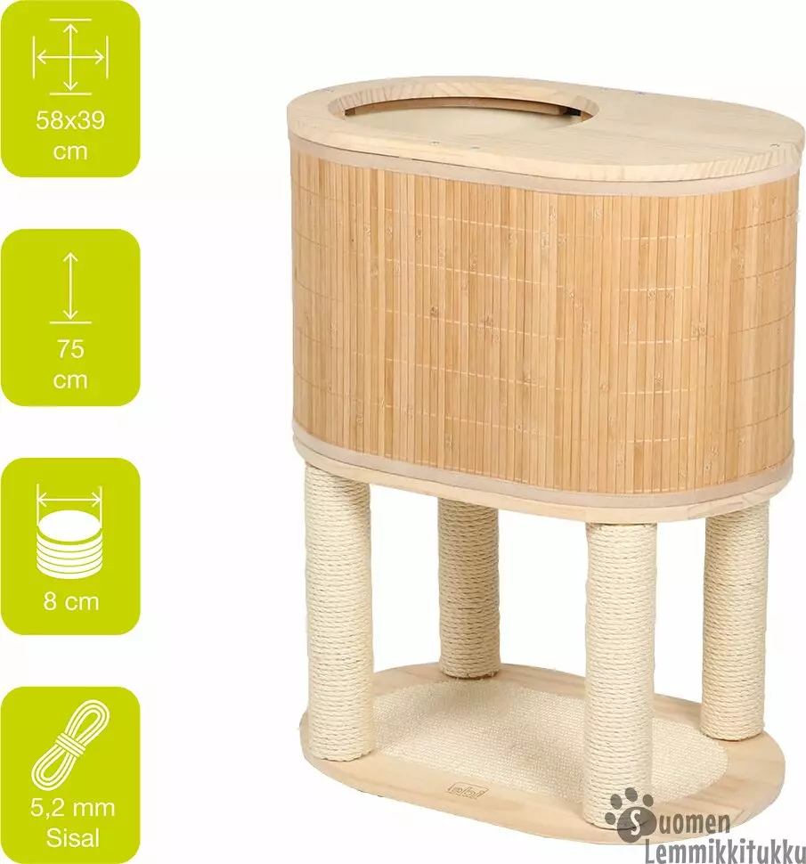 Ebi Tori-raapimapuu on saksalaista suunnittelua japanilaisilla vaikutteilla. Luonnollisten materiaalien kuten bambu, vaalea puu ja sisal käyttö kauniissa pyöreissä muodoissa tekee siitä tyylikkään mutta hienovaraisen ja monenlaiseen sisustustyyliin sopivan elementin.