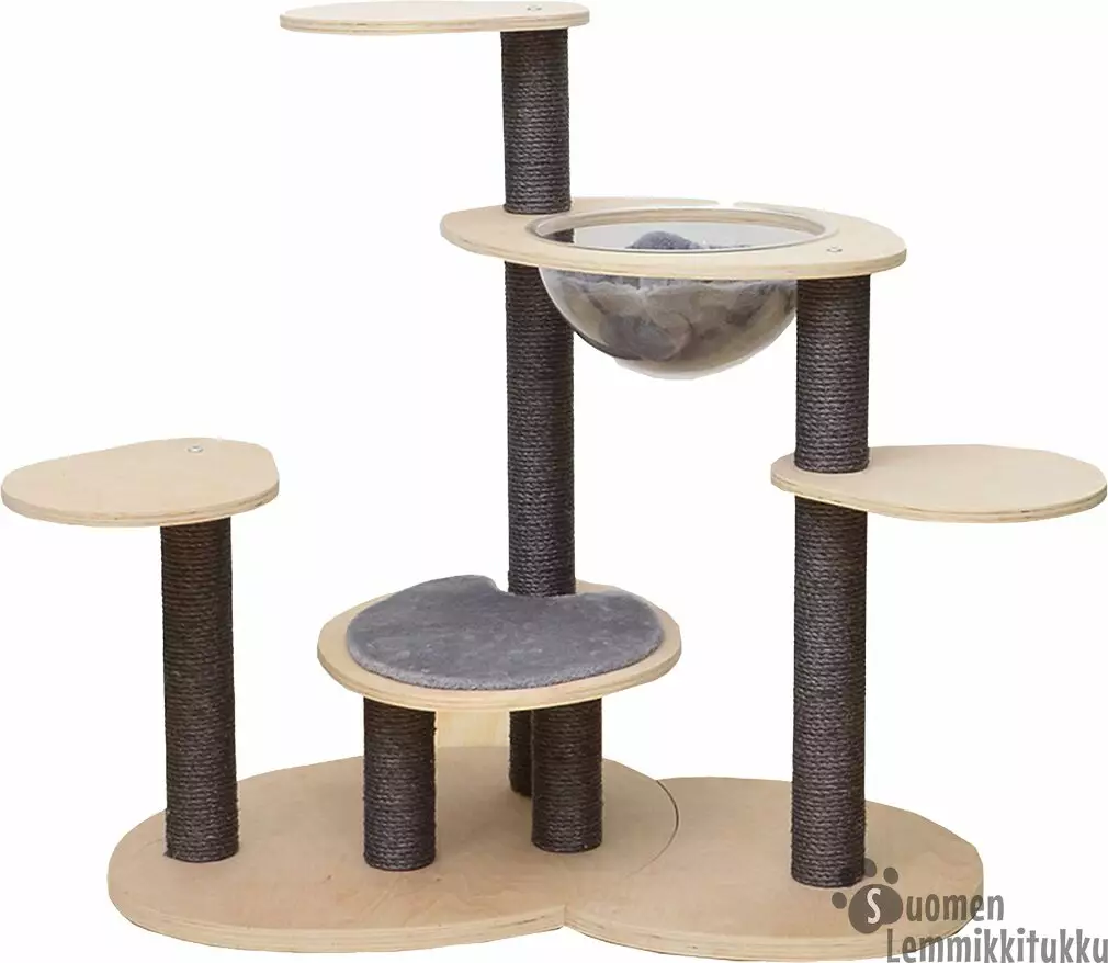 Ebi Orion on uudentyylinen, ilmeeltään moderni raapimapuu, joka on matala ja tukeva. Orion vie paljon lattiapinta-alaa ja useita tasoja sekä hauskan läpinäkyvän kuplapedin. Suosittelemme Orionia pienille kissoille sekä pennuille.