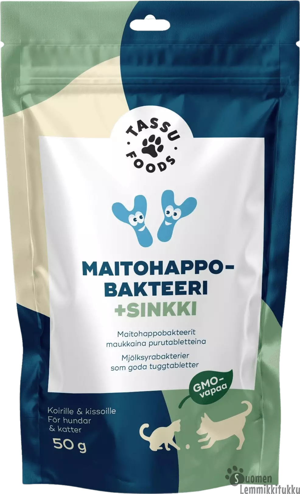 Tassu Foods Maitohappobakteeri + sinkki sisältää tutkitusti toimivia maitohappobakteereita sekä kolme tarkoin valittua inaktivoitua hiivakantaa. Tuotteen toiminta perustuu koirilla ja kissoilla tieteellisesti tutkittuihin ja EFSA:n hyväksymiin inaktivoituihin Lactobacillus helveticus HA-122 ja Lactobacillus paracasei HA-108 maitohappobakteeri-, sekä Saccharomyces cerevisiae ja Cyberlindnera jadenii hiivakantoihin.
