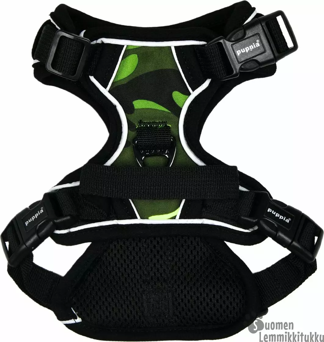 Puppian uuden mallin valjas Abstract on kauniin värinen ja mukava käytössä. Valjaat ovat kevyet ja isommissa versioissa on hyvin säätövaraa. Valjaissa on pehmeä Mesh-vuori ja polyesterista päälypuoli. Valjaiden etupuolella on metallinen ns. vedonestorengas ja selässä on kahva.