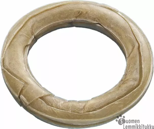 Maukas ja vähärasvainen naudannahkainen puristettu puruluurengas, joka on kovaa purtavaa ja sopii siten vahvaleukaiselle koiralle.