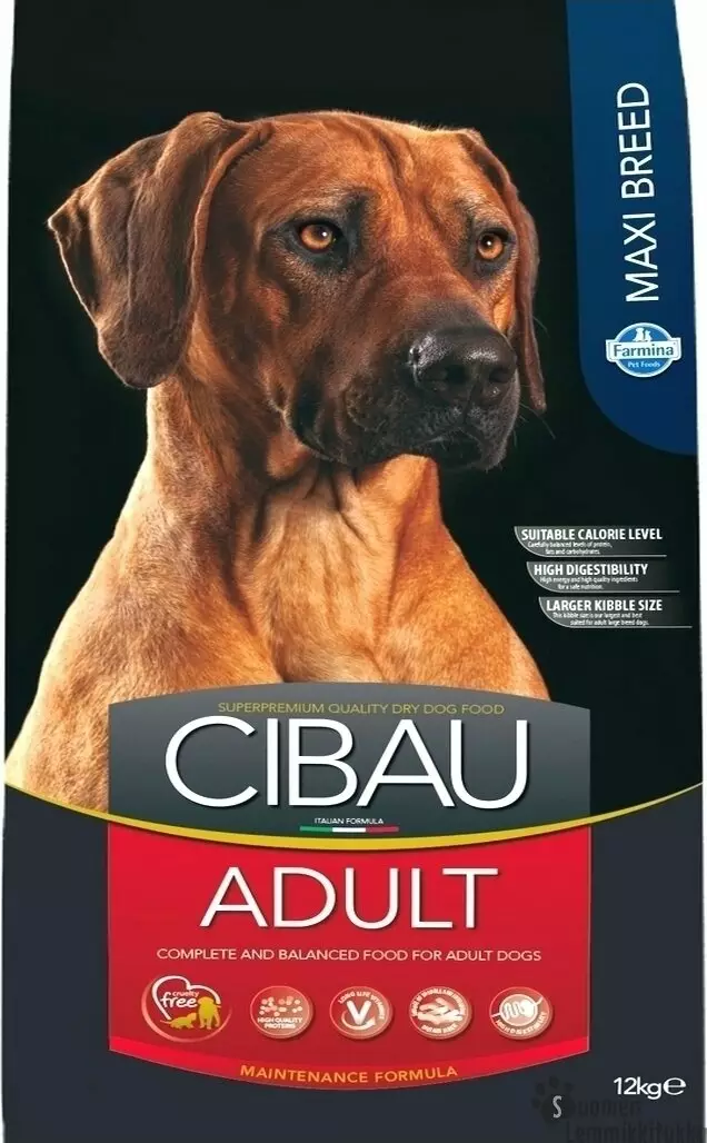 Cibau Adult Maxi Breed on täydellistä ja tasapainoitettua täysravintoa suurten rotujen aikuisille koirille (28-40 kg.) ja jättiläisrotujen aikuisille koirille (>40 kg.), joilla on normaali aktiivisuustaso.