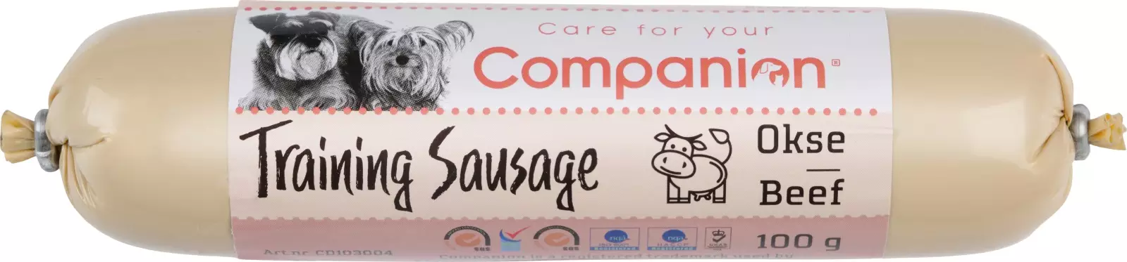 Companion Treenimakkara nauta on herkullinen, luonnollinen herkku, joka toimii treeniherkkuna täydellisesti. Ei tahraa käsiä ja pysdyy pilkkomisen jälkeen hyvin kasassa. Voit pilkkoa juuri oikean kokoisia paloja! Valmistettu luonnollisista ainesosita ilman lisättyä sokeria.