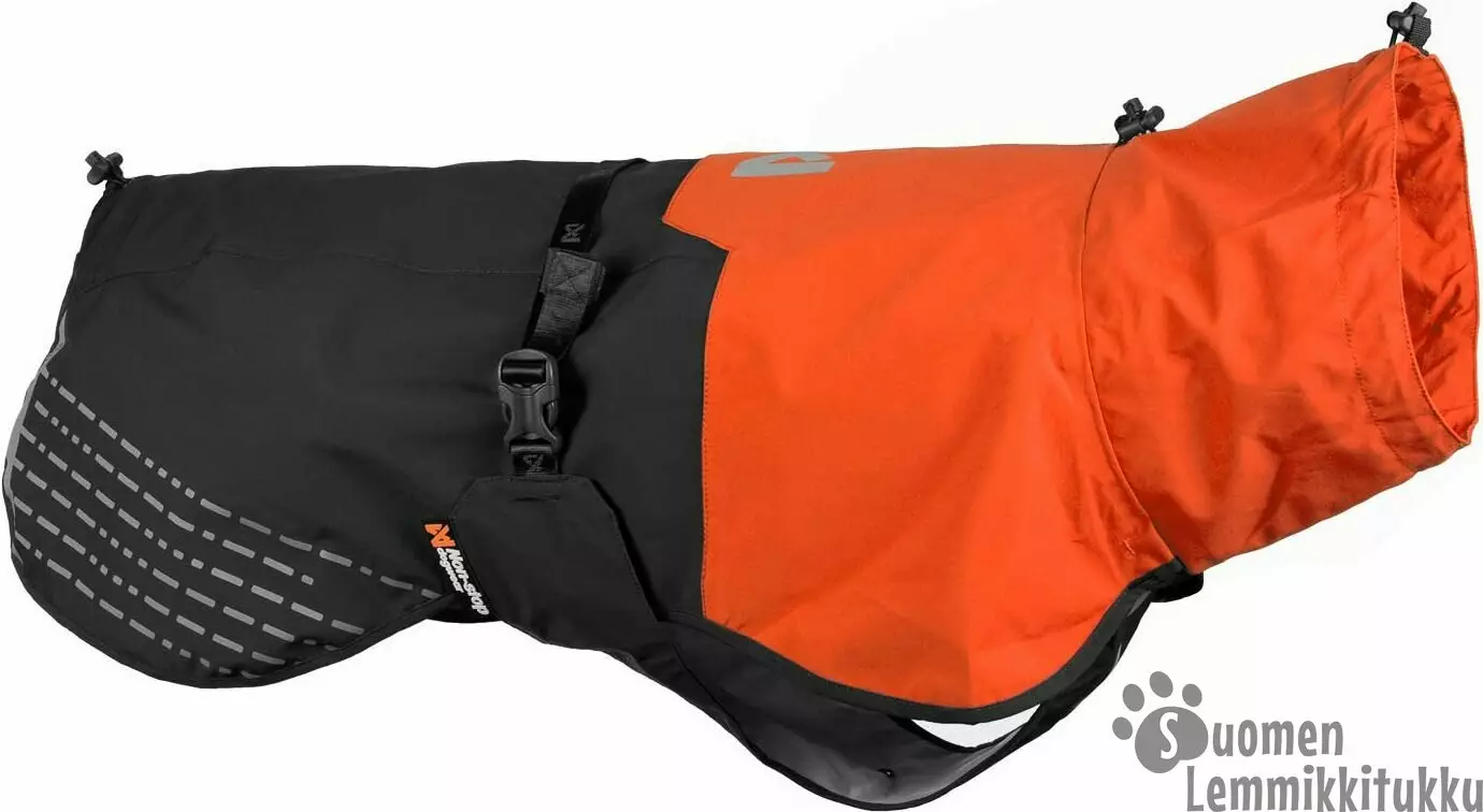 Non-Stop tuulen- ja vedenpitävä sadetakki koirille sopii erinomaisesti retkeilyyn, ulkoiluun ja muuhun koirasi kanssa tapahtuvaan ulkoiluun. Sadetakissa on erinomainen hengittävyys ja 15 000 mm: n vesipilariarvo pitää koirasi kuivana kovassakin sateessa. Omaa mukavuuttasi lisää se, että kun palaatte kotiin sadesään retkiltä, myös talosi pysyy puhtaana ja kuivana, kun kaverisi turkki on kuiva ja puhdas. Älä siis anna sateisen sään estää teitä menemästä ulos ja pitämästä hauskaa yhdessä!