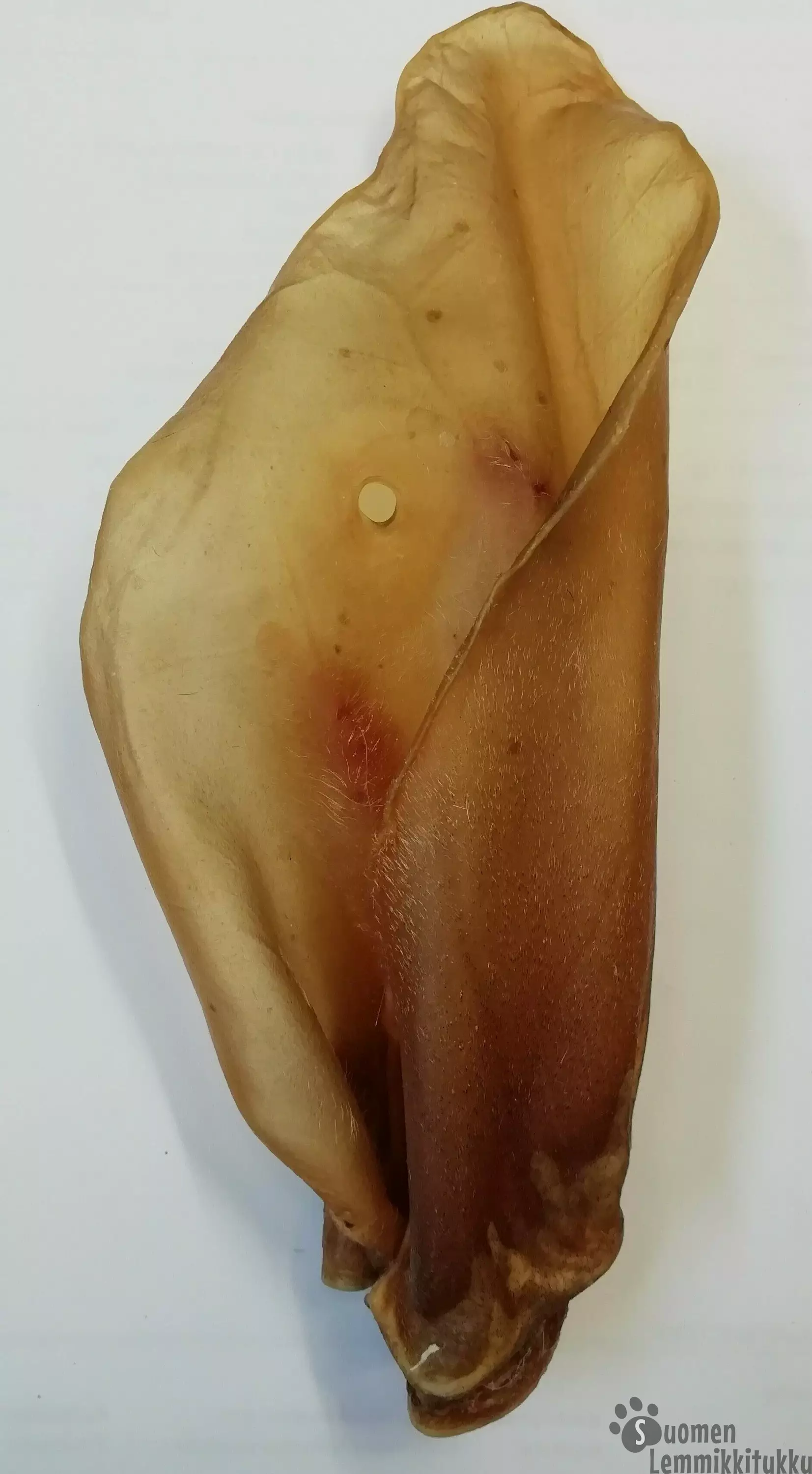 Kuivattu häränkorva koiralle makupalaksi. Täysin luonnonmukainen hellävaraisesti kuivattu häränkorva on vähemmän rasvaista kuin sian korva ja siinä on koiralle jäystettävää, koska se on hieman sitkeätä.