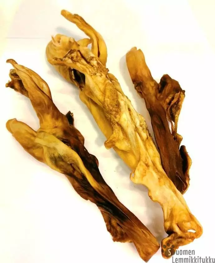 Kuivattu lampaankorva nahkapalalla on kevyempää purtavaa koirallesi kuin esim. siankorvat. Lampaankorva sopii myös monille allergisille koirille.