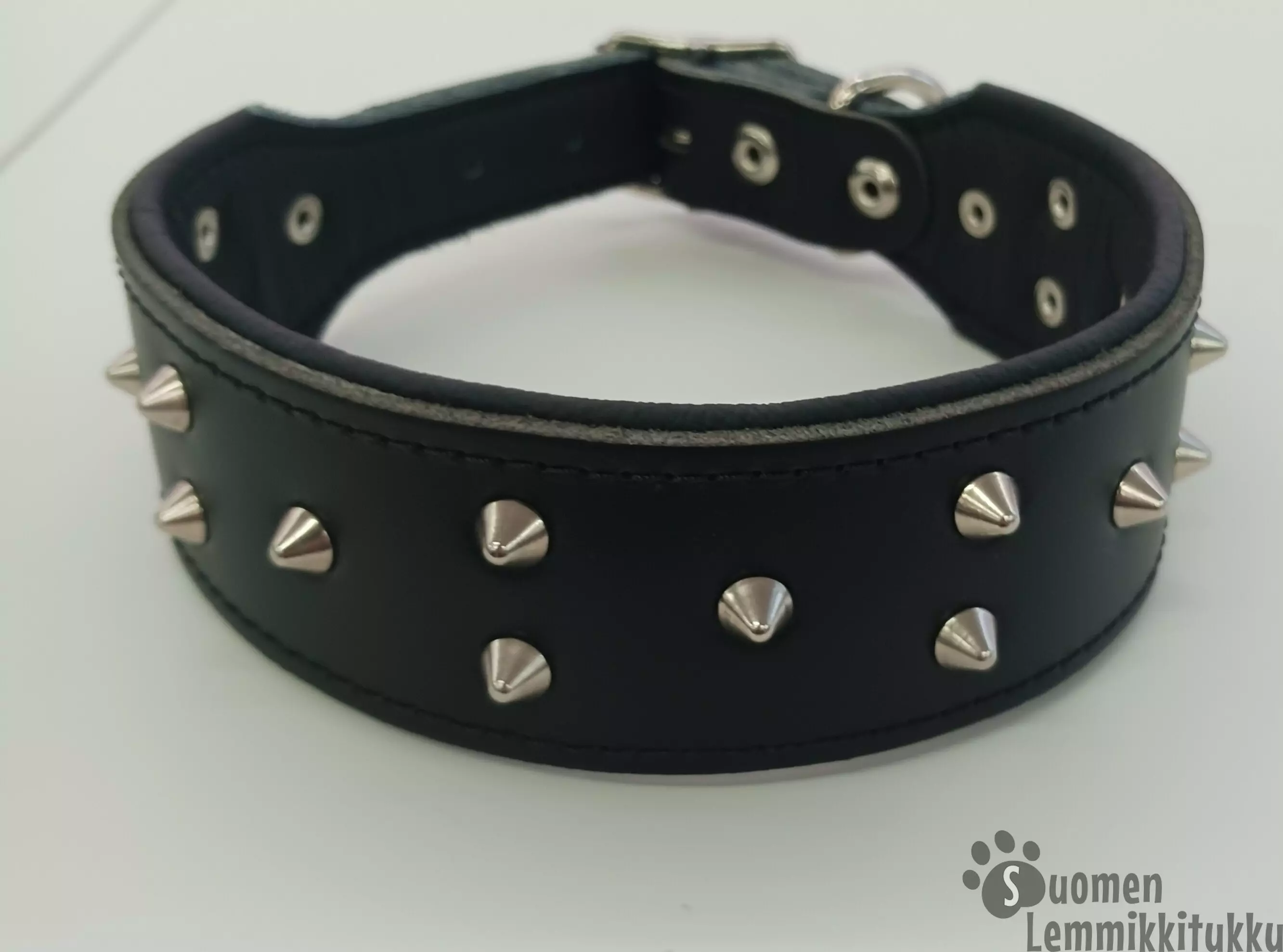 Upea ja näyttävä nahkainen niittipanta on tehty kestämään ja näyttää katu-uskottavalta isommankin koiran kaulassa. Pannan päällinen laadukasta nahkaa ja pohja pehmeää nappanahkaa, joka tuntuu miellyttävältä koiran kaulaa vasten.