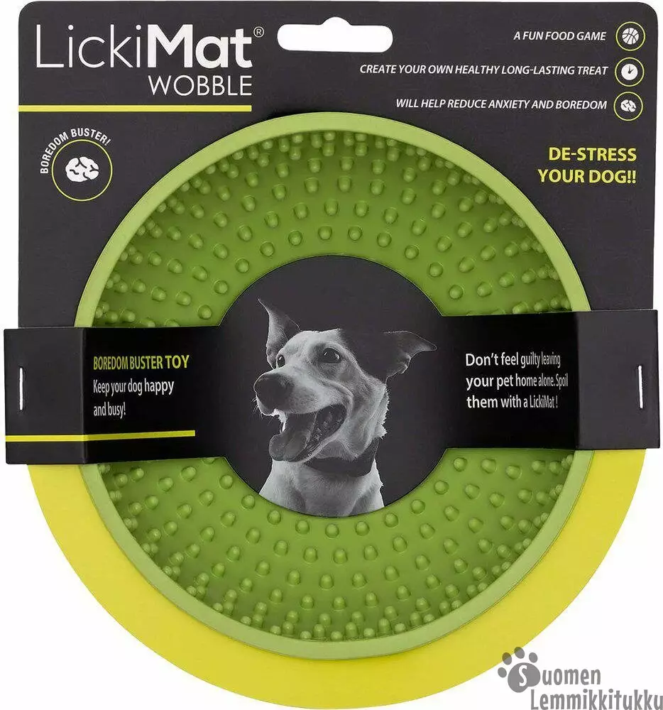 Käyttö: Levitä Wobbleen lemmikillesi sopivaa märkä- tai raakaruokaa, tahnaa, mitä tahansa keksitkään ja anna lemmikkisi hoitaa loput!
