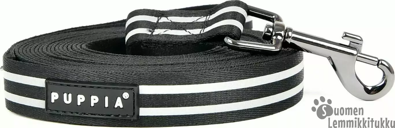 Puppian Night Safty-talutin on kevyt mutta pitkä talutin, jossa on toisella puolella koko taluttimen pituudelta heijastinnauhat. Talutin on erittäin kevyt ja sen metallinen lukko on keskikokoinen. Materiaalina on 100% polyesteri.