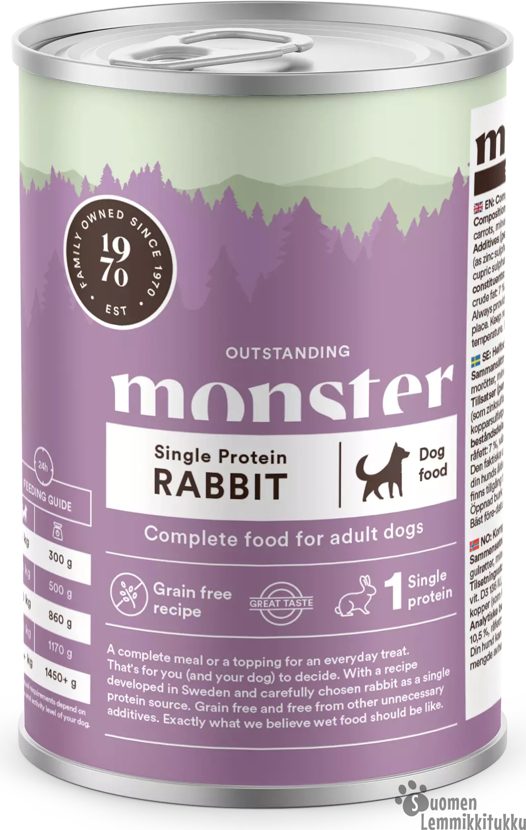 Monster Single Protein Kani on maistuva ns. yhden proteiinin täysravinto, jota voidaan käyttää joko täysravintona tai arjen luksuksena. Monster Kani on erinomainen herkälle vatsalle ja maistuu yleensä myös nirsoille koirille.