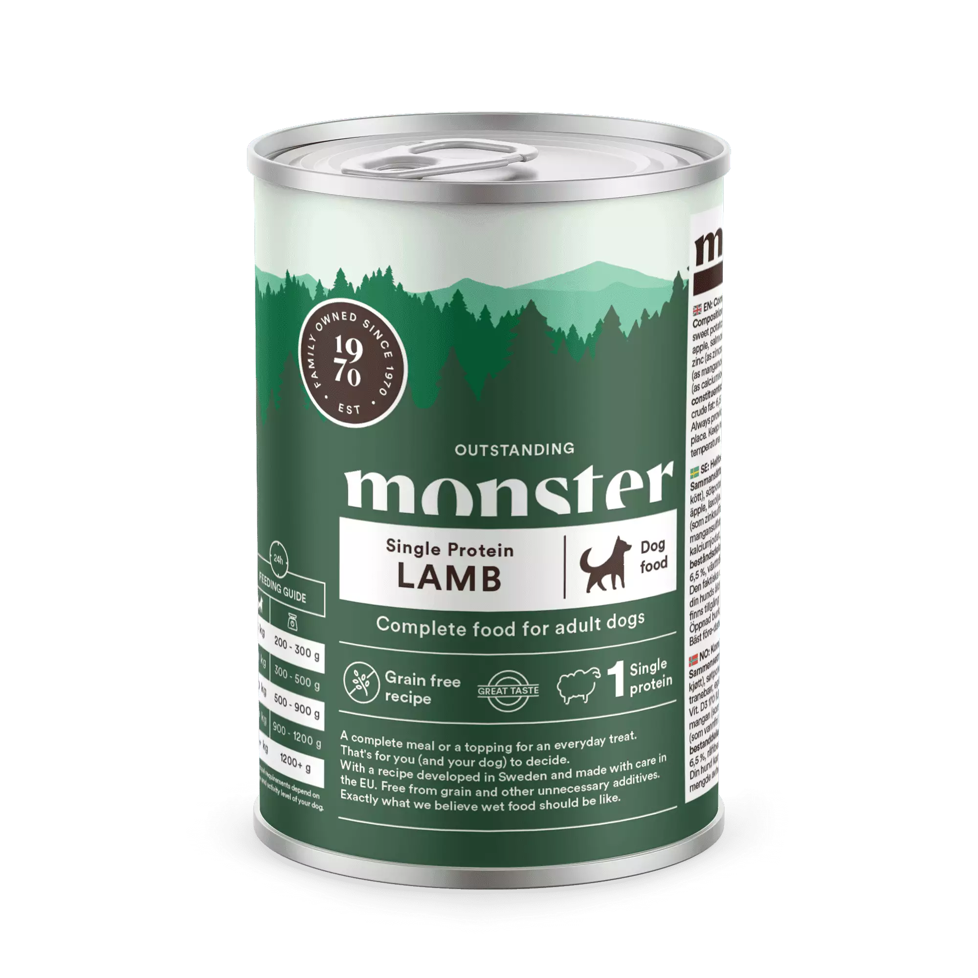 Monster Single Protein Lammas on herkullinen ns. yhden proteiinin täysravinto, jota voidaan käyttää joko täysravintona tai arjen luksuksena. Sinä (ja koirasi) päätätte miten käytätte tuotetta. Tuote on kehitetty Ruotsissa ja valmistettu luonnollisista raaka-aineista – taatusti ilman viljoja, lisättyä sokeria tai tarpeettomia lisäaineita. Juuri sellaista ruokaa kuin koira mielestämme tarvitsee.