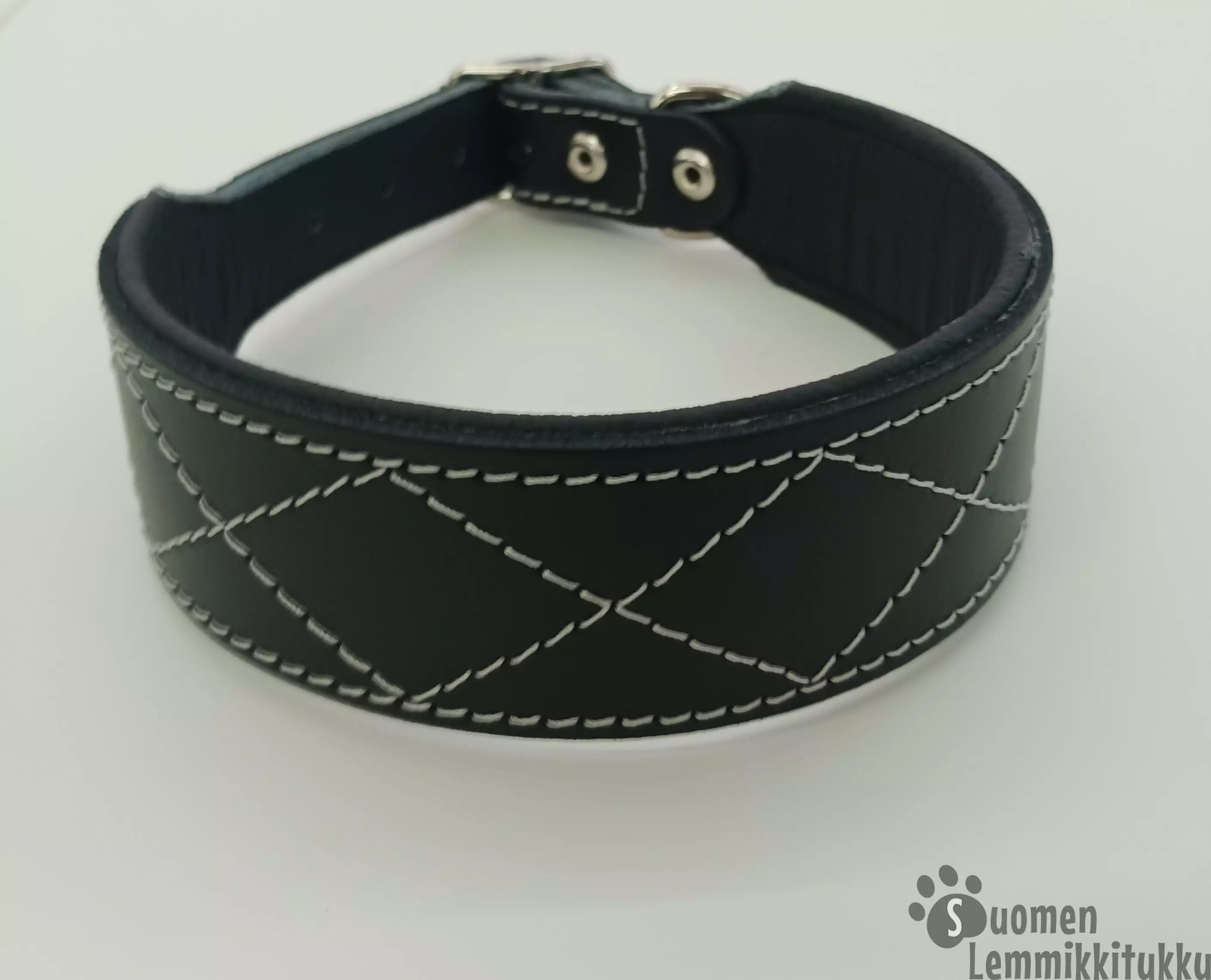 Nahkapanta koiralle koristetikkauksilla, musta 4,5cm