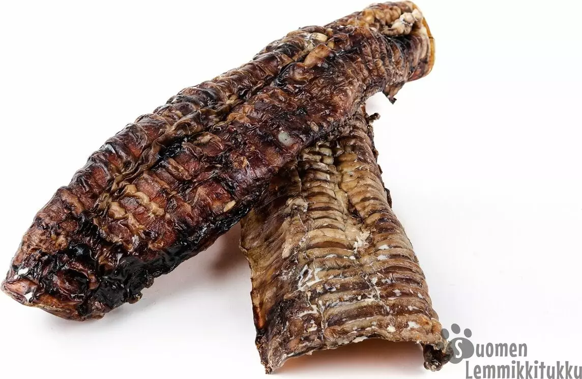Tessun naudan henkitorvi on ajanvietettä parhaimmillaan, tästä riittä isommallekin koiralle tekemistä! Kotimainen naudan henkitorvi on putkimainen tai vähän litteämpi makupala, joka on kuivattu uunissa kovaksi ja sitkeäksi. Sen parissa lemmikkisi viettää hetken jos toisenkin ja tämä rasvainen herkku maistuu taatusti vähän nirsommallekin kaverille! Henkitorvet on puolitettu pitkittäissuunnassa