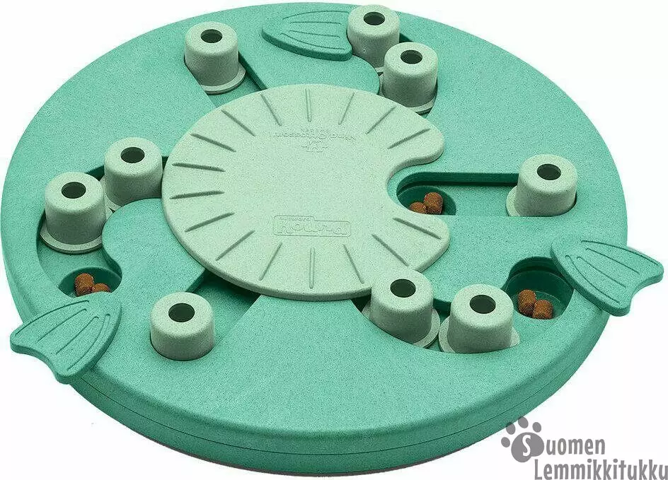 Nina ottossonin Dog Worker-pelissä on kieritettävä levy sekä työnnettäviä ja nostettavia palikoita. Koirasi joutuu hieromaan älynystyröitään päästäkseen käsiksi herkkuihin. Sopii kaikille koirille ikään tai kokoon katsomatta. Pyöritä ja liu´uta!