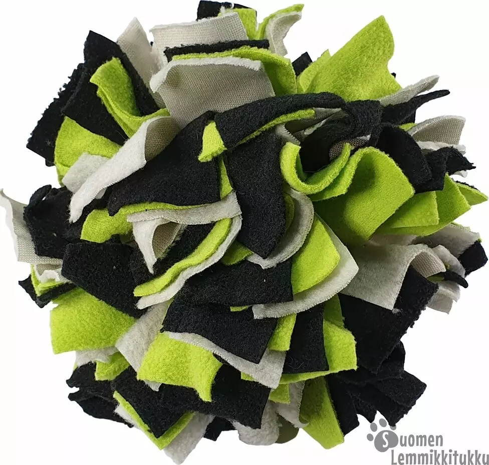 Nobbyn fleecesuikaleista valmistettu aktivointipallo hitaampiin ruokailuhetkiin. Fleecesuikaleiden väliin saat piilotettua kuivaruokaa tai herkkuja, jolloin lemmikin tehtävä on saada namit pois pallosta. Aktivointipallon halkaisija on n. 15 cm.