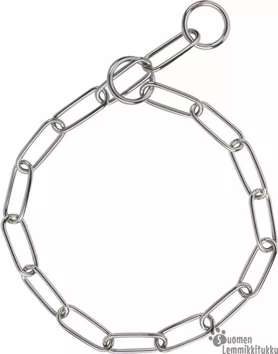 Koiralle kromattu ketjupanta, jossa erittäin kestävä, kiiltävä kromaus varmistavat kestävän ja luotettavan kokonaisuuden.