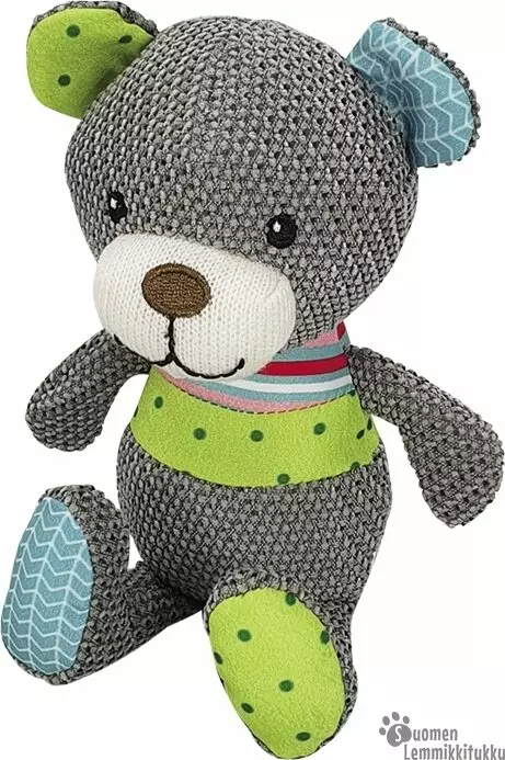 Suloisen pehmeä pehmolelu, joka sopii kokonsa puolesta pienille koirille sekä pennuille. Ommellut yksityiskohdat. Materiaali on kangasta ja neulosta mikä antaa erilaisia suutuntumia. -Päässä... Lue lisää