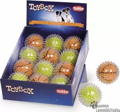 TPR on erittäin kestävä materiaali, joka takaa pitkänkäyttöiän. Tässä pallossa on kestävä TPR-pinta kumipiikeillä ja pallon sisällä on koirien tennispallo.