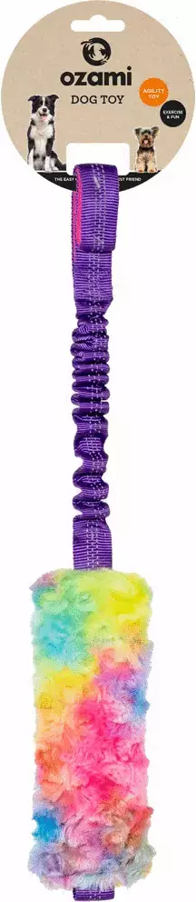 Koiran vetolelu keinoturkisella ja vingulla sopii moneen: treeneihin palkkaleluksi, noutamiseen ja vaikka vetoleikkeihin. Venyvä kahva vaimentaa nykäisyjä.