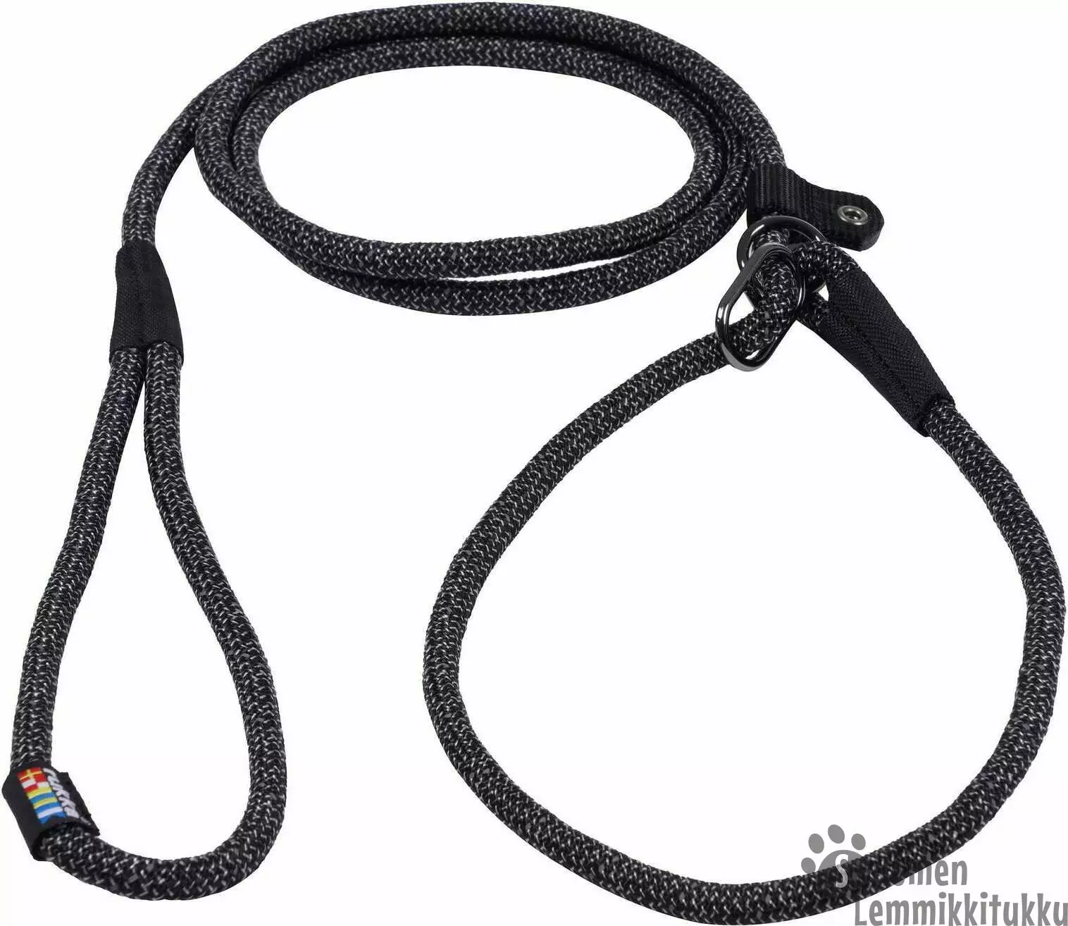 Taluttimen materiaali on 100% polyesteria ja meleeratun värin sekaan on punottu heijastavaa nauhaa.