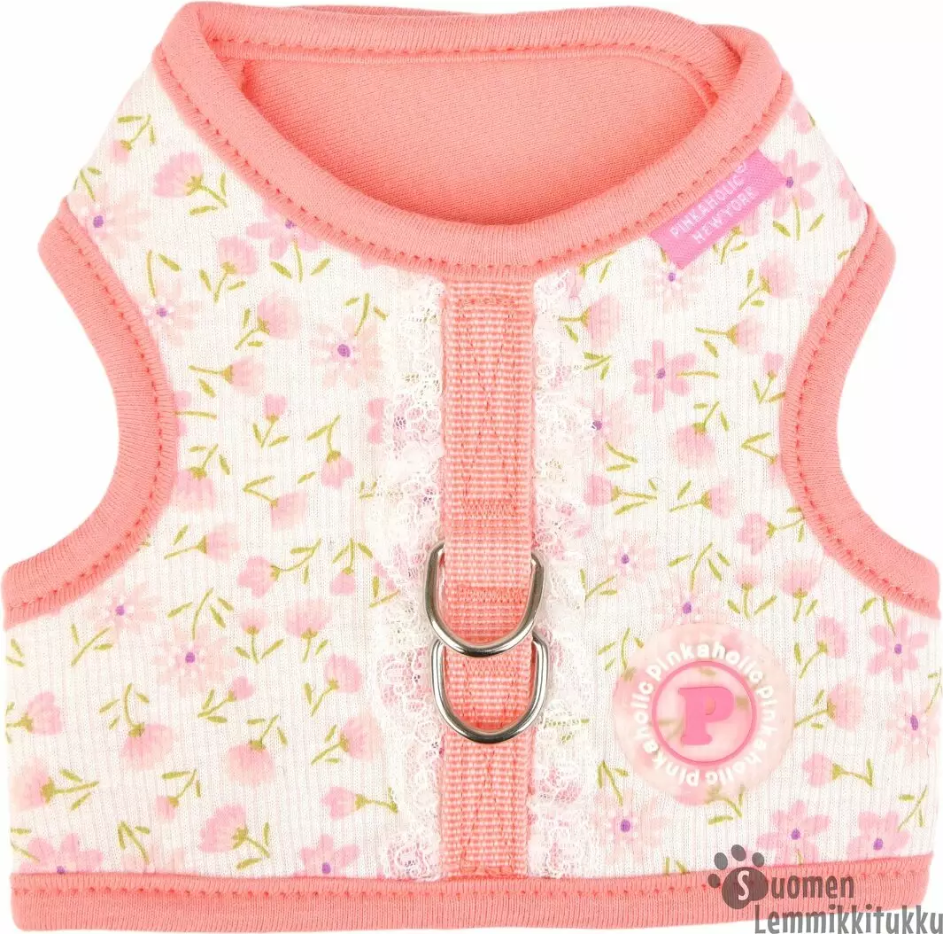 Pinkaholic takkivaljas sopii etenkin pienille koirille ja pennuille. Valjaat ovat hengittävät ja kevyet käytössä ja sopivat etenkin pienille koirille ja pennuille ja myös kissoille. Suloisen pehmeiden valjaiden materiaali on pehmeätä ja sisäpuolella on miellyttävä puuvillavuori.