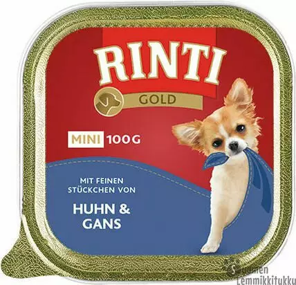 Maittava täysravinto pienille aikuisille koirille. Rinti Gold Mini on valmistettu parhaista raaka-aineista ilman väriaineita tai soijaa. Soveltuu erityisesti pienille koirille. Sisältää runsaasti hyvin sulavaa lihaa, vitamiineja sekä kivennäis- ja hivenaineita. Maukas ruoka kätevässä 100g foliorasiassa, joka takaa ruuan tuoreuden.
