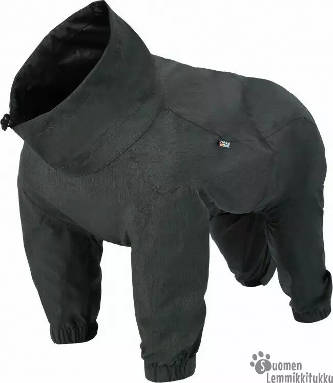 Haalarin joustava kangas on mukava päällä ja eikä estä koiran liikkumista. Selässä oleva vetoketju tekee haalarista helposti puettavan. Lahkeensuiden tarrakiinnitysten ansiosta haalari sopii kaiken kokoisille tassuille ja pysyy tiiviinä. Säädettävä vyötärö ja säädettävä pääntie viimeistelevät istuvuuden ja maksimoivat suojan.
