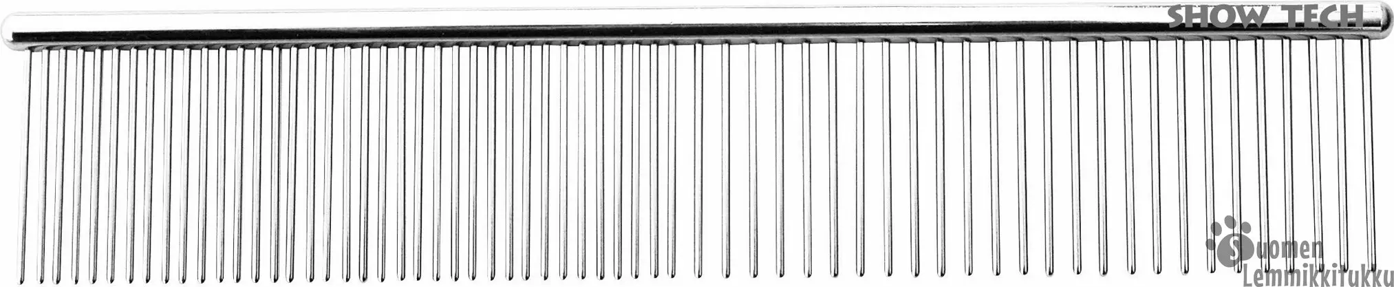 Metallinen pyöreäselkäinen kampa on lujaa tekoa mutta kuitenkin kevyt käyttää. Tämä kampa sopii ihan jokapäiväiseen käyttöön. Toisessa päässä piikit on tiheämmässä ja kampa sopiikin hyvin takkujen avaamiseen ja turkin viimeistelyyn. Harvapiikkisellä päällä voidaan harjata turkki läpi, sillä harvemmat piikit eivät ota niin tiukasti kiinni mahdollisiin takkuihin. Tämän jälkeen kammataan tiehämmällä päällä, jotta karvat saadaan varmasti erilleen toisistaan ja selvitettyä pienimmätkin takut.